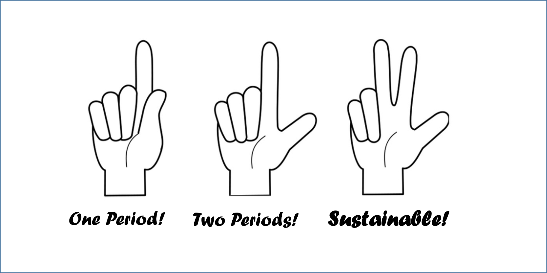 Admittedly, sometimes a two-is-a-crowd technique also works, and sometimes it needs a four-is-a-crowd! This really depends on the circumstances. But three periods is – at our experience – really the often found trigger for making most financial analysts think that a trend is sustainable. And it is also something that companies can effectively manage as a transitory period for changing their asset or liability duration periods. It is the sweet spot of cheaters! But if companies can go for even more periods: even better for the illusion.